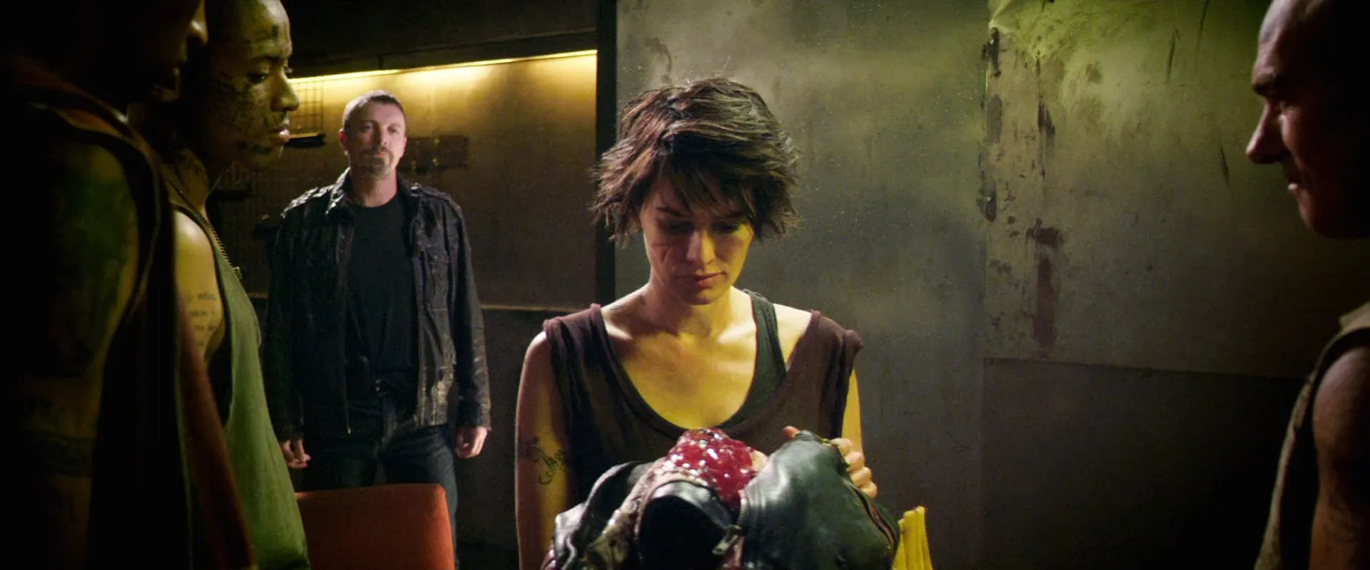 Cast: Karl Urban as Judge Dredd, Olivia Thirlby as Anderson, Lena Headey as Ma-Ma, Wood Harris as Kay, Langley Kirkwood as Judge Lex, Tamer Burjaq as Ma-Ma Bodyguard, Joe Vaz as Big Joe, Rakie Ayola as Chief Judge, Junior Singo as Amos, Luke Tyler as Freel, Jason Cope as Zwirner, Domhnall Gleeson as Clan Techie, Warrick Grier as Caleb (uncredited), Rachel Wood as Control Operator 1, Andile Mngadi as Passenger (uncredited), Porteus Xandau as Driver (uncredited), Emma Breschi as Hostage (uncredited), Shoki Mokgapa as Woman with Child (uncredited), Yohan Chun as Girl in Window (uncredited), Eden Knowles as Girl in Window (uncredited), Desmond Lai Lan as Homeless Man (uncredited), Deobia Oparei as Paramedic TJ (uncredited), Patrick Lyster as Control Operator 2 (uncredited), Travis Snyders as Slo-Mo Junkies (uncredited), Scott Sparrow as Japhet (uncredited), Marty Kintu as Big Joe Gang Member (uncredited), Nicole Bailey as Cathy (uncredited), Daniel Hadebe as Judge at Entrance (uncredited), Francis Chouler as Judge at Entrance (uncredited), Edwin Perry as Judge Alwarez (uncredited), Karl Thaning as Judge Chan (uncredited), Michele Levin as Judge Kaplan (uncredited), Chad Phillips as Slo-Mo Junkie