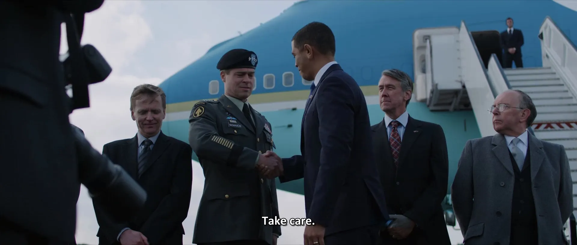 Cast: Brad Pitt as Gen. Glen McMahon, Anthony Michael Hall as Greg Pulver, Emory Cohen as Willy Dunne, John Magaro as Cory Staggart, Topher Grace as Matt Little, Daniel Betts as Simon Ball, Aymen Hamdouchi as Badi Basim, Alan Ruck as Pat McKinnon, Anthony Hayes as Pete Duckman, RJ Cyler as Andy Moon, Nicholas Jones as Dick Waddle, Will Poulter as Ricky Ortega, Lakeith Stanfield as Cpl. Billy Cole, Ben Kingsley as President Karzai, Meg Tilly as Jeannie McMahon, Griffin Dunne as Ray Canucci, Josh Stewart as Captain Dick North, Kola Bokinni as Mike Cutter (as Kolwole Bokinni), Derek Siow as Tony Song, Hopper Penn as Pvt. Nick Farrenberg, Pico Alexander as Trey Wandella, Scoot McNairy as Sean Cullen, Justin Rosniak as Colonel Derek Bogg, Paolo Gasparini as Colonel Plotti Balotti, Simon Werner as Colonel Helmut Bauer, Sian Thomas as Edith May, Reggie Brown as President Obama (as Reginald D. Brown), Chris Lew Kum Hoi as Andy Carroll (as Christopher Lew Kum Hoi), Hassani Shapi as General Mohammad Khan, Jean-Pierre Lorit as Pierre Giteau, Gillian Jones as Tashi Tsomo, Richard Glover as Chaplain Richards, Ben Peel as Bernie Coot Special Operator, Elham Ehsas as Translator Kenny, Georgina Rylance as Lydia Cunningham, Abdul Whahab as Translator - Shura, Tilda Swinton as German Politician, Kick Gurry as Tom Howard, Rufus Wright as Lt. Col. Frank Groom, Gijs Scholten van Aschat as Dutch Contractor, Mirrah Foulkes as Captain Barbara Floss, Dan Wyllie as Pope, Josh McConville as Payne, Tim Downie as Paul Smear, Sean Power as US Platoon Commander, Andrew Byron as General Vladislav Melnik, Daniel Fritz as German Hotel Clerk, Mohammadi Gul as Marja Father, Abdul Salam as Marja Child, Aykut Hilmi as Afgan Bureaucrat, Nezar Alderazi as Afghan Palace Guard, Orli Shuka as Macedonian Guard #1, Tara D'Arquian as Le Grand Hotel Clerk, Russell Crowe as Bob White, Vic Waghorn as Gala Dignitary, Amy Clare Beales as USRAF Soldier, Christian Mandel as Lt. Cole